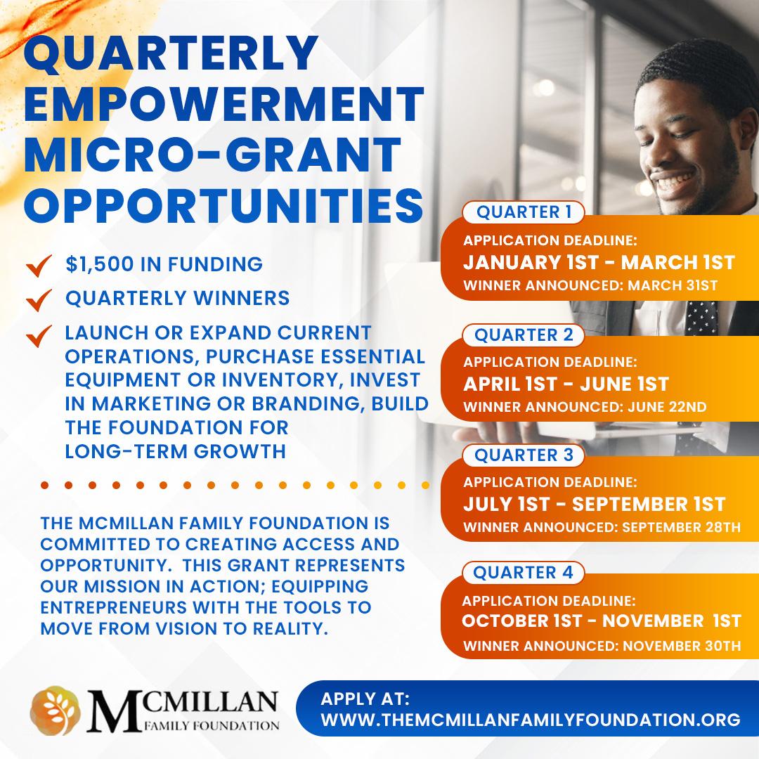 Explore curated guides, helpful downloads, and trusted partner materials designed to support your journey in entrepreneurship, financial empowerment, and healthy living. These resources are here to help you grow, thrive, and take your next step with confindence. You can also learn more about the McMillan Family Foundation and our initiatives as we continue creating lasting impact through our core pillars.