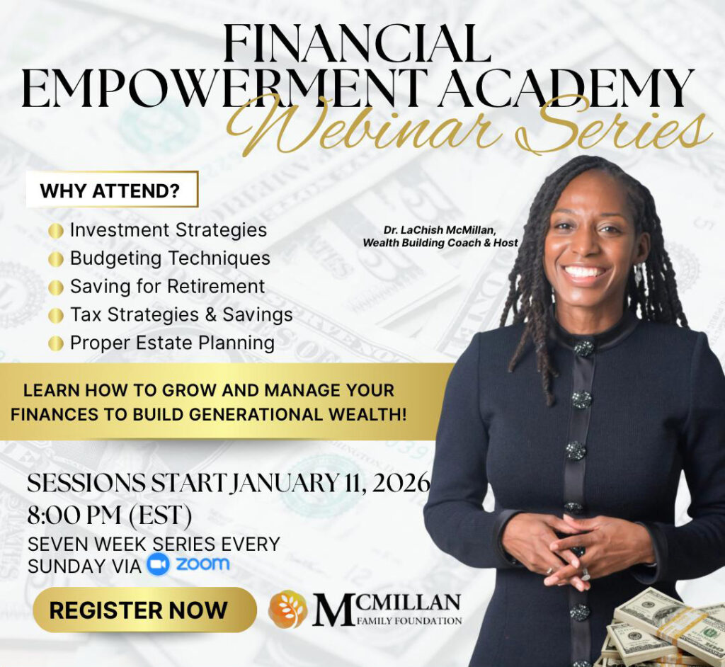 In 2024, Drs. Ced and LaChish McMillan founded the McMillan Family Foundation as a way to give back to business owners, aspiring entrepreneurs, and individuals striving for financial freedom. Viewing philanthropy as an investment in people and communities, they built a mission centered on three core pillars: financial literacy, entrepreneurship, and health.